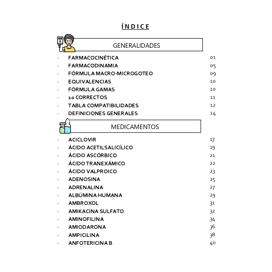 Son 207 p谩ginas entre las generalidades y los medicamentos 馃槉 cada medicamento cuenta con su presentaci贸n, mecanismo de acci贸n, indicaci贸n, reconstituci贸n, diluci贸n, conservaci贸n, solvente, interacciones y compatibilidades, administraci贸n, velocidad de administraci贸n, reacciones adversas y cuidados de enfermer铆a 馃А viene en tama帽o 1/4 carta