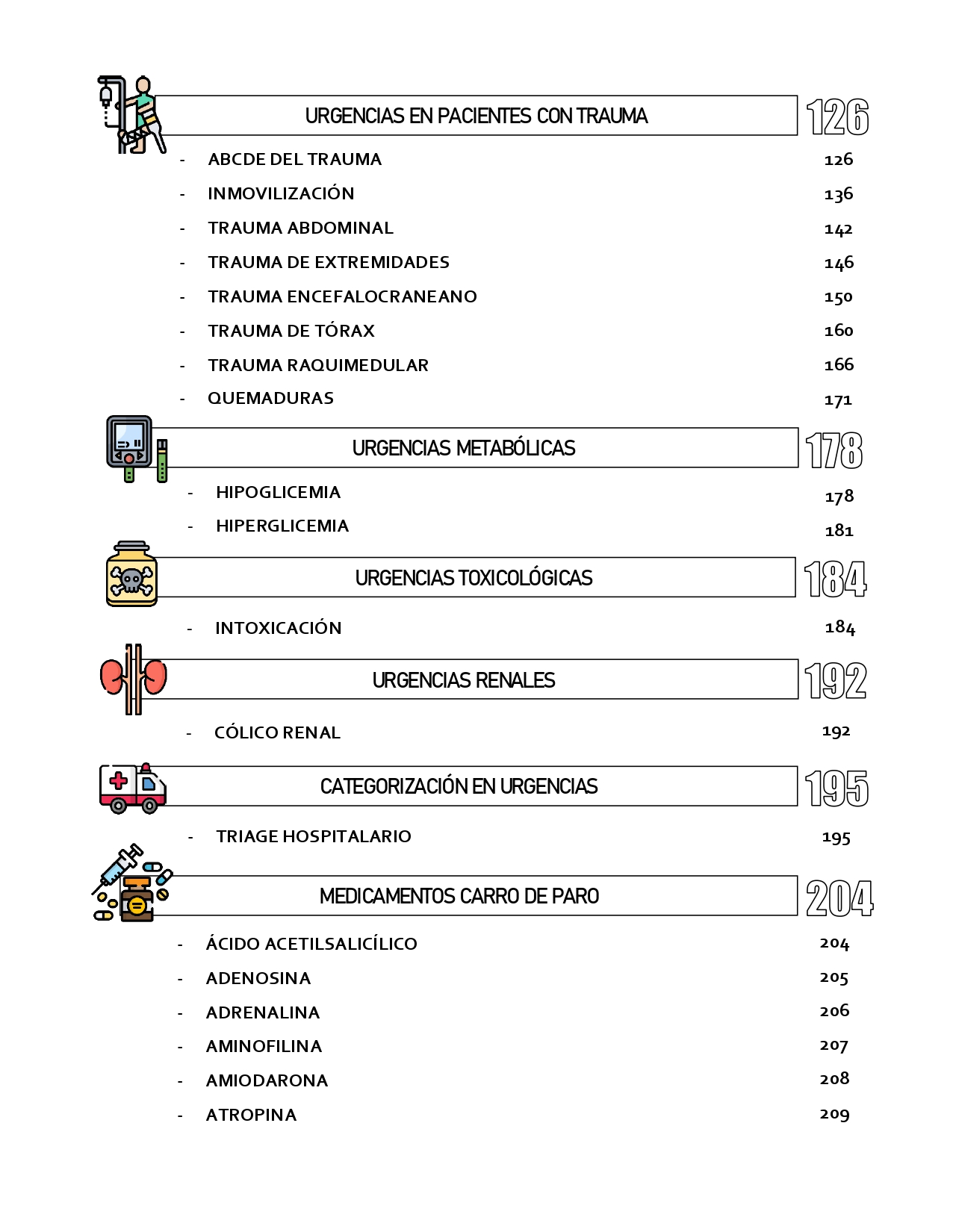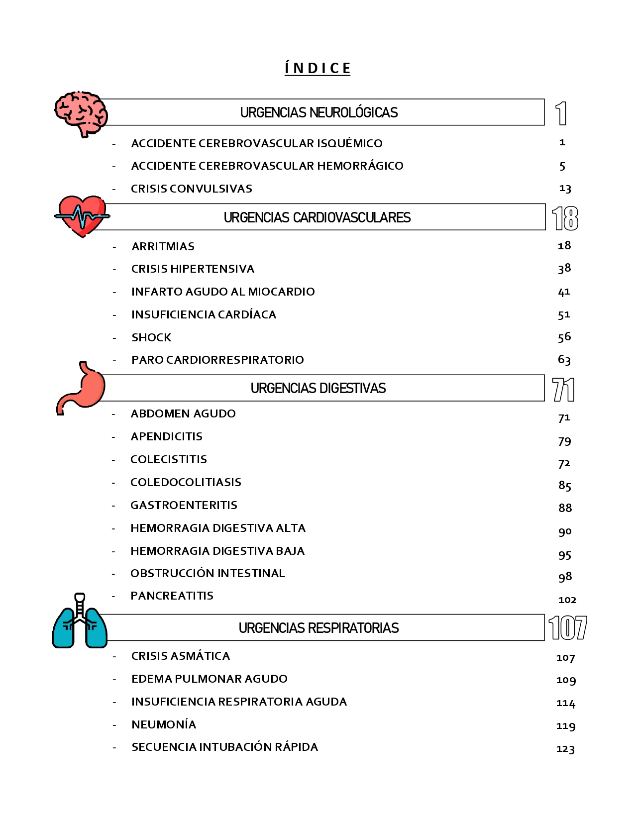Libreta compuesta de las patologías mas frecuente del servicio. Cuenta que definición, signos y síntomas, diagnostico, tratamiento, diagnósticos NANDA e intervenciones de enfermería. Incluye los fármacos del carro de paro. Tamaño 1/4 carta.